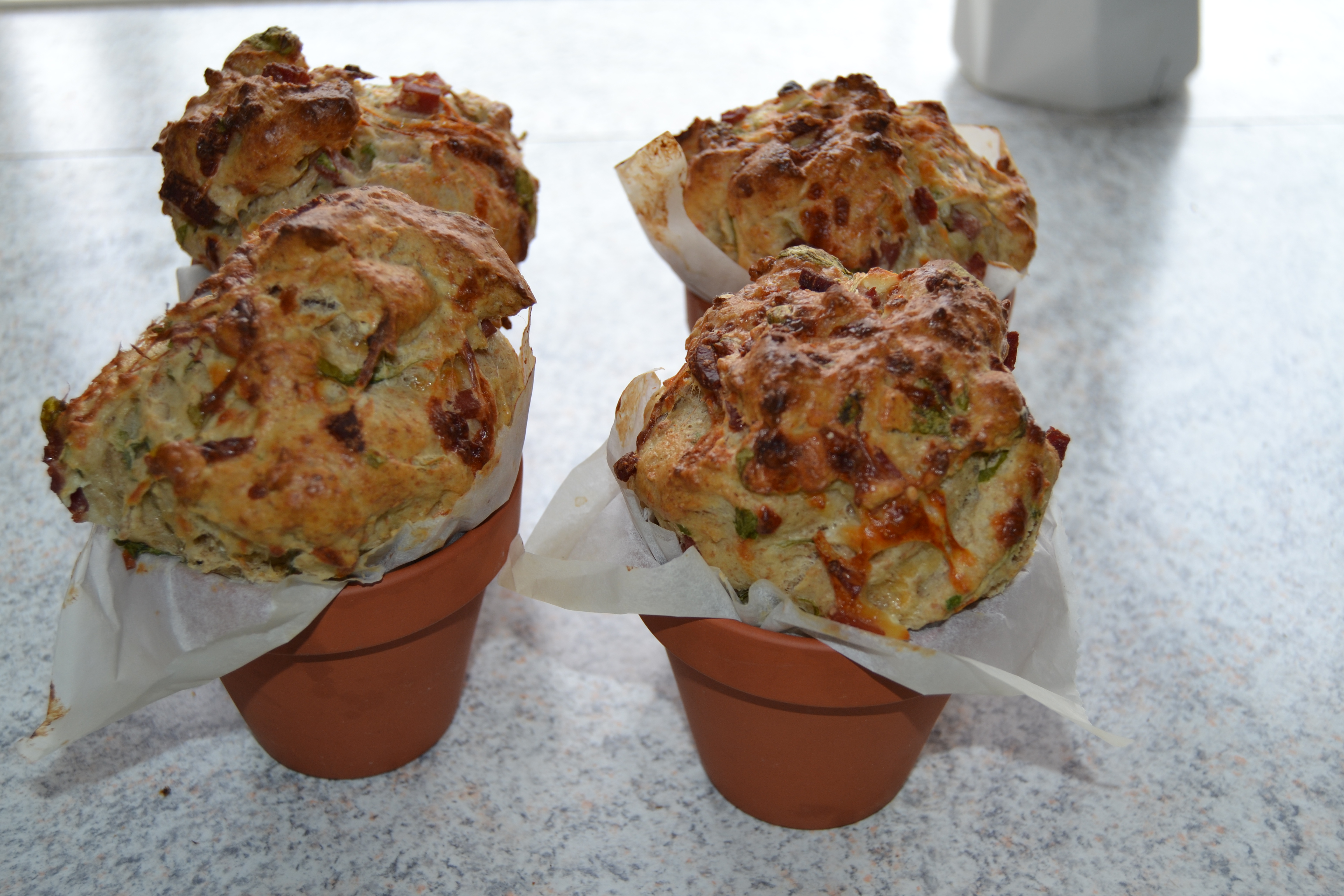 Pottebrød er hyggelige små brød med ost og serrano/parmaskinke, som jeg ofte bruger som tilbehør når vi har gæster. Brødet kan enten bages i små rødlerspotter (jeg har både i helt små og i en mellemstørrelse) eller bages som et helt brød -med eller uden potte. Brødet skaber ofte vild begejstring grundet udseendet, men i høj grad også for smagen. Som meget andet bagværk, er de bedst lige når de er lavet.