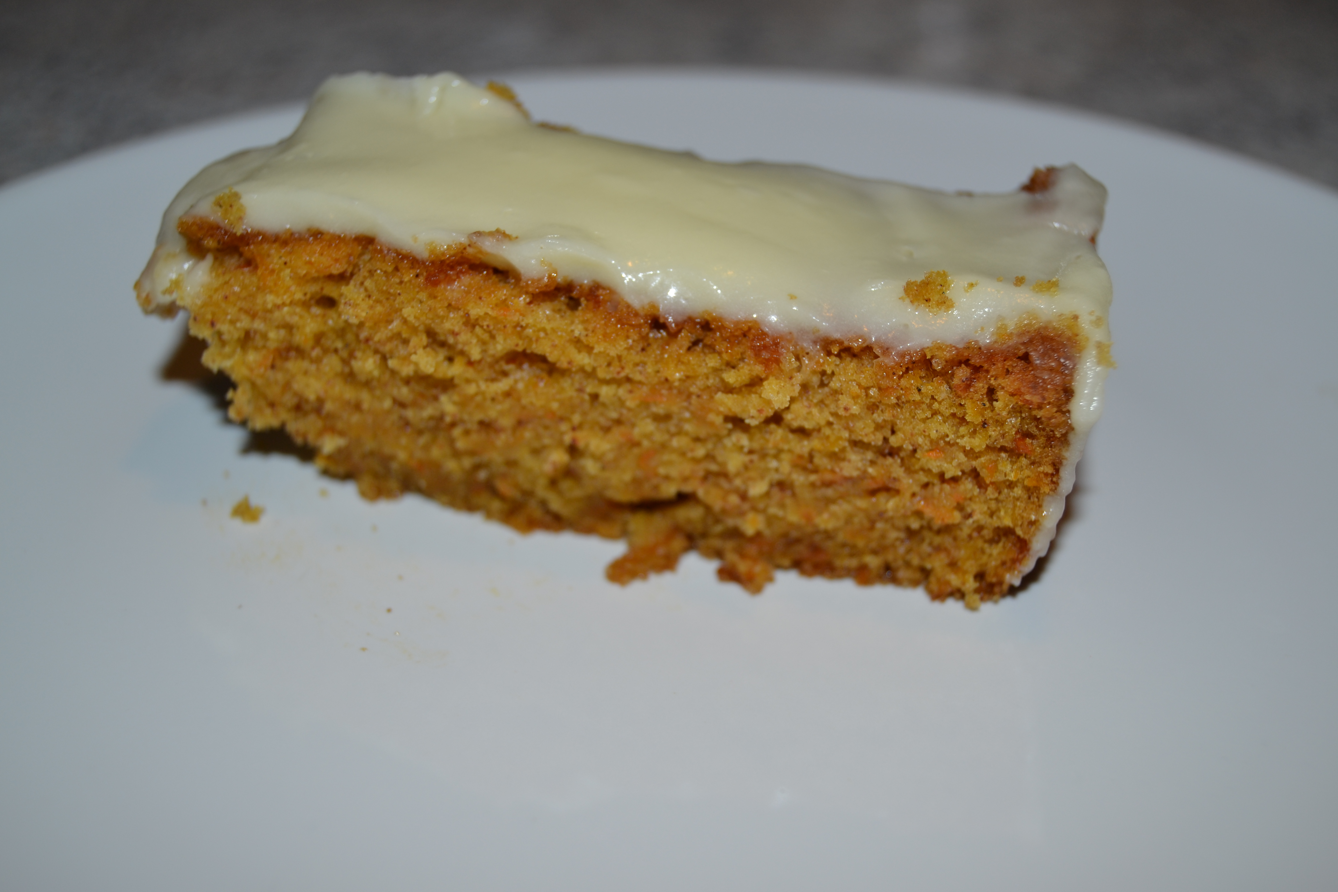 Hvis du ønsker en glasur kan jeg anbefale at blande 30 g. smør, 1 dl. flormelis og 50 gram neutral flødeost. Glasuren piskes godt sammen og smøres over kagen når den er kølet af. Det smager himmelsk 😀