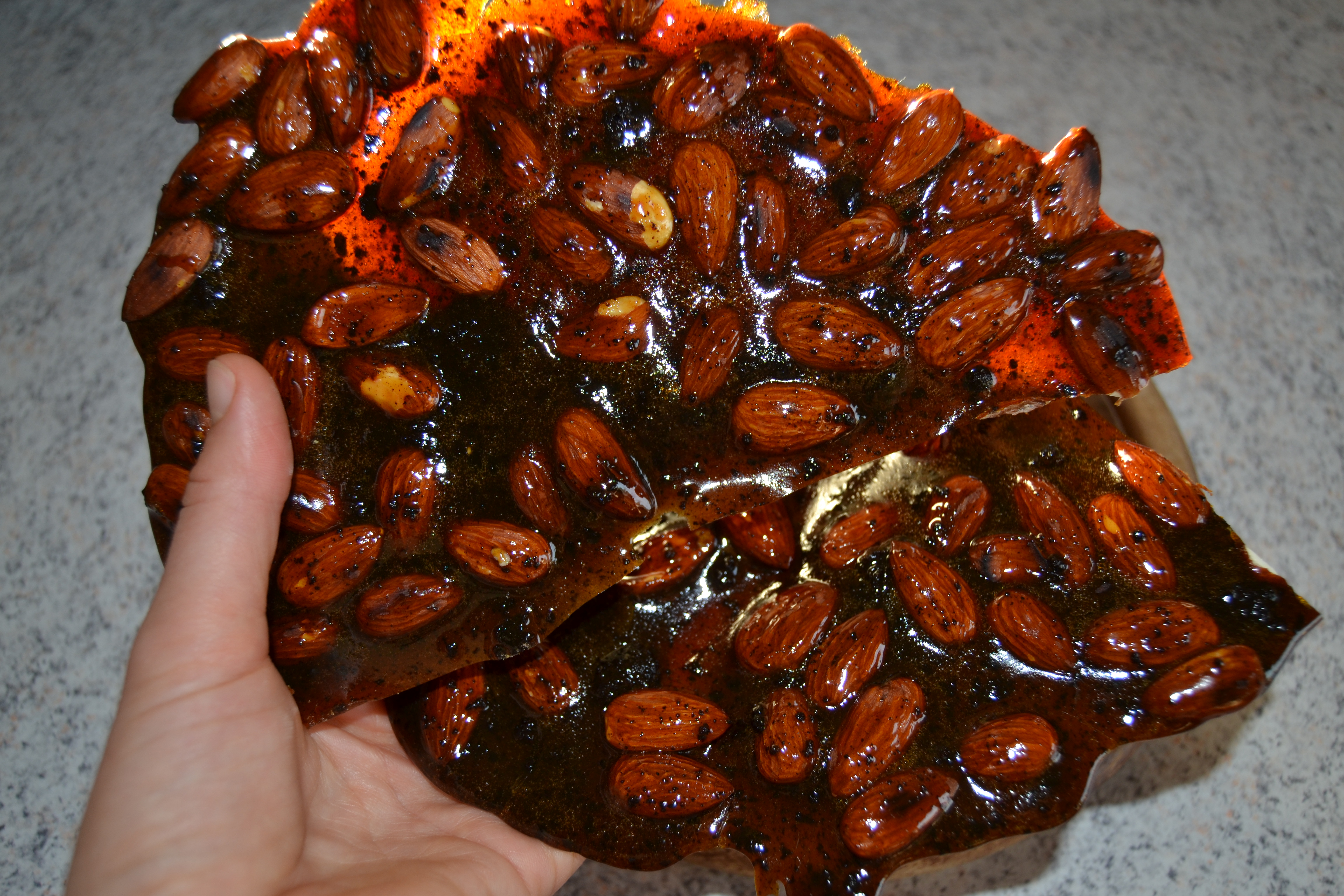 Lakridsmandlerne egner sig også fantastisk som topping på hjemmelavet lakridsis eller chokolademousse.