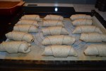 Søndag er mere eller mindre fast bagedag hjemme hos os. I dag var ingen undtagelse. Der er blevet bagt pølsehorn, masser af knækbrød og chokoladekage. Her får du min suveræne opskrift på pølsehorn. (21 stk. pr. portion)