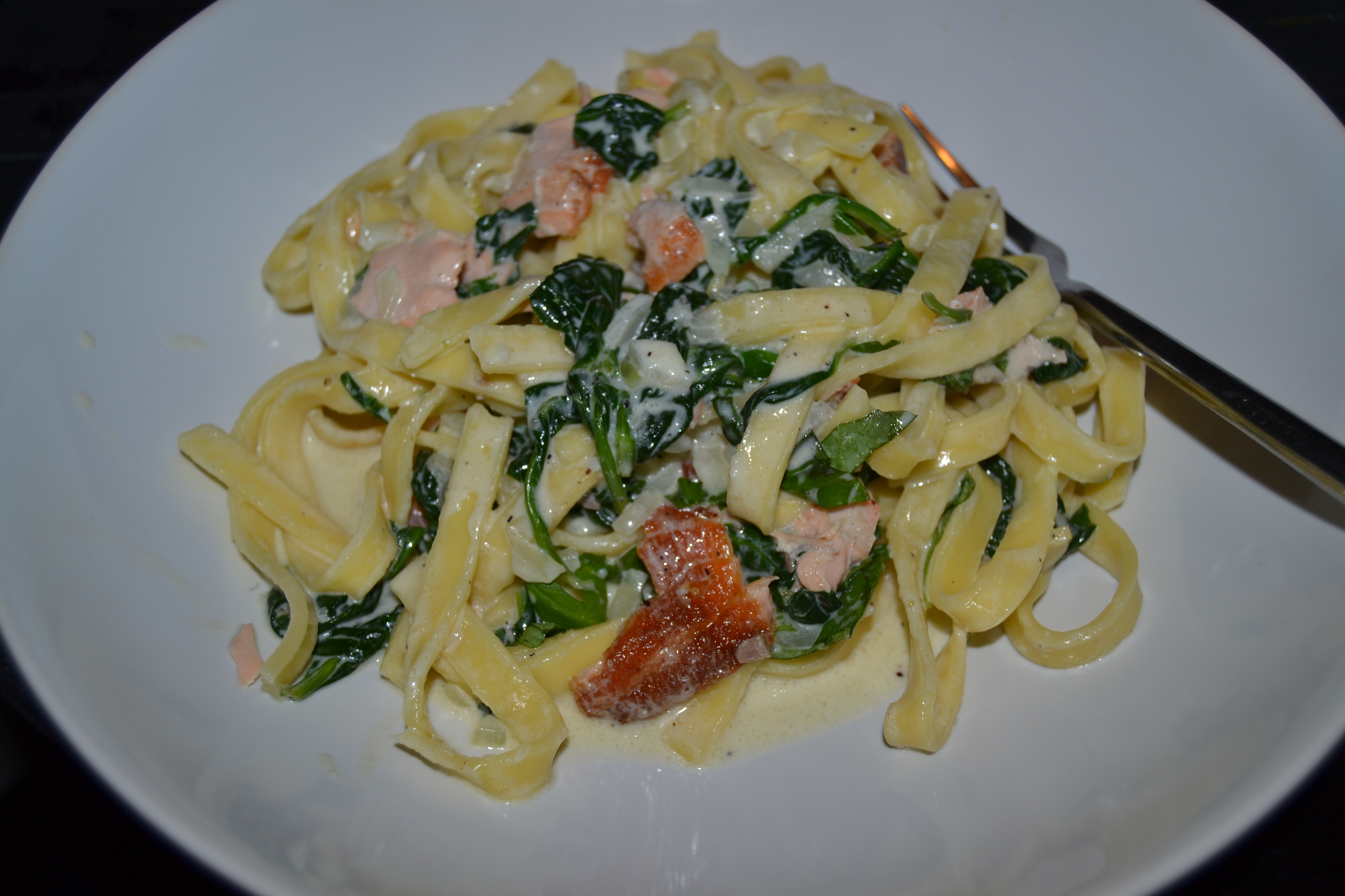 Pasta med laks og spinat