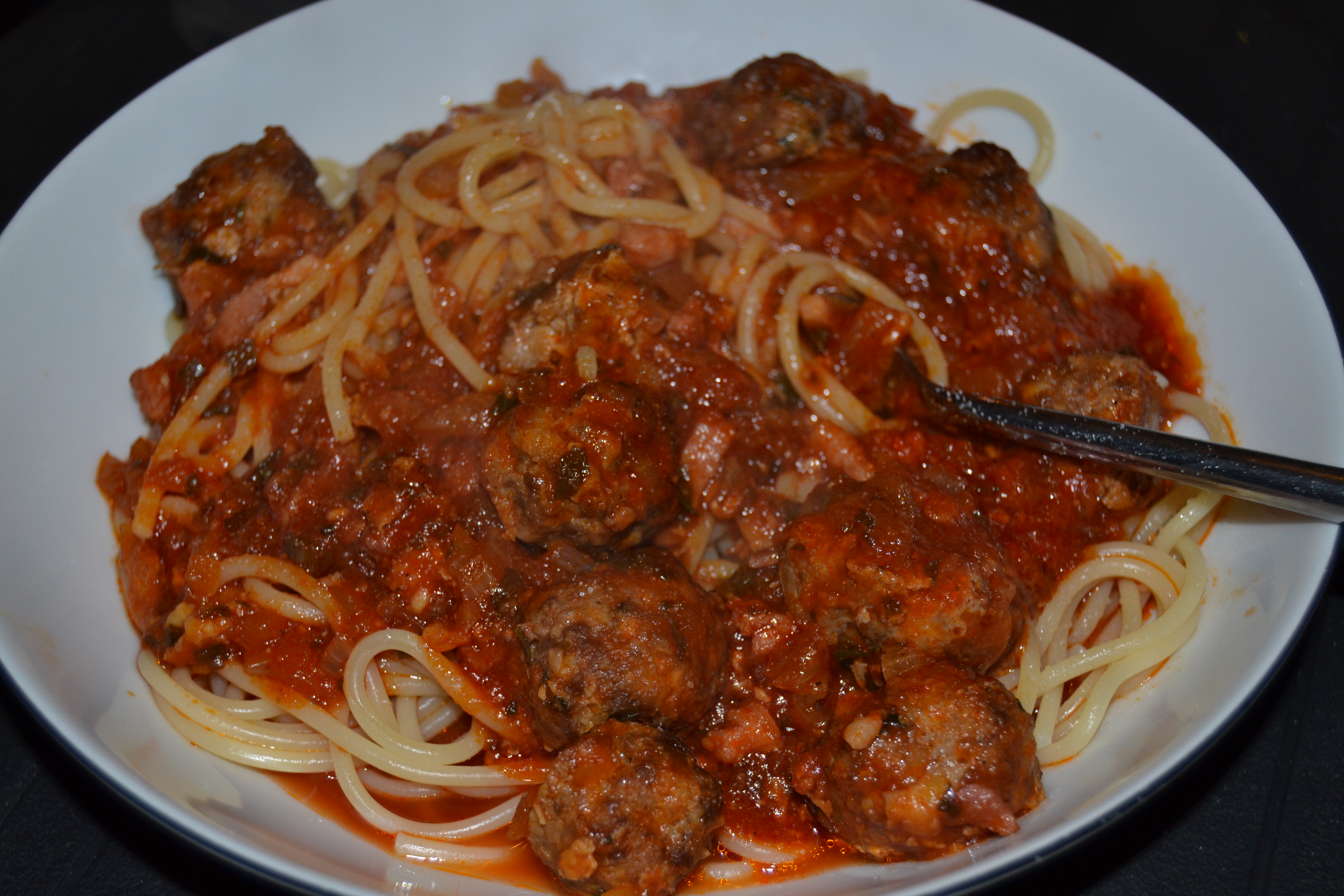 En af min fars signaturretter er spaghetti med kødboller eller Italienske kødboller, som det hedder hos os. Det er en re, som jeg derfor ofte fik i min barndom, og som stadig ynder at komme på bordet når vi kører det årlige cykelløb. Det er måske ikke verdens smukkeste ret, men det har til gengæld masser af smag, og en portion smager sjovt nok altid af lidt mere. I forhold til min fars opskrift har jeg ændret enkelte deltjaler, da det aldrig er lykkes mig, at få retten til at smage lige så godt, som den gør når farmand laver den, så jeg måtte jo gøre et eller andet 😉