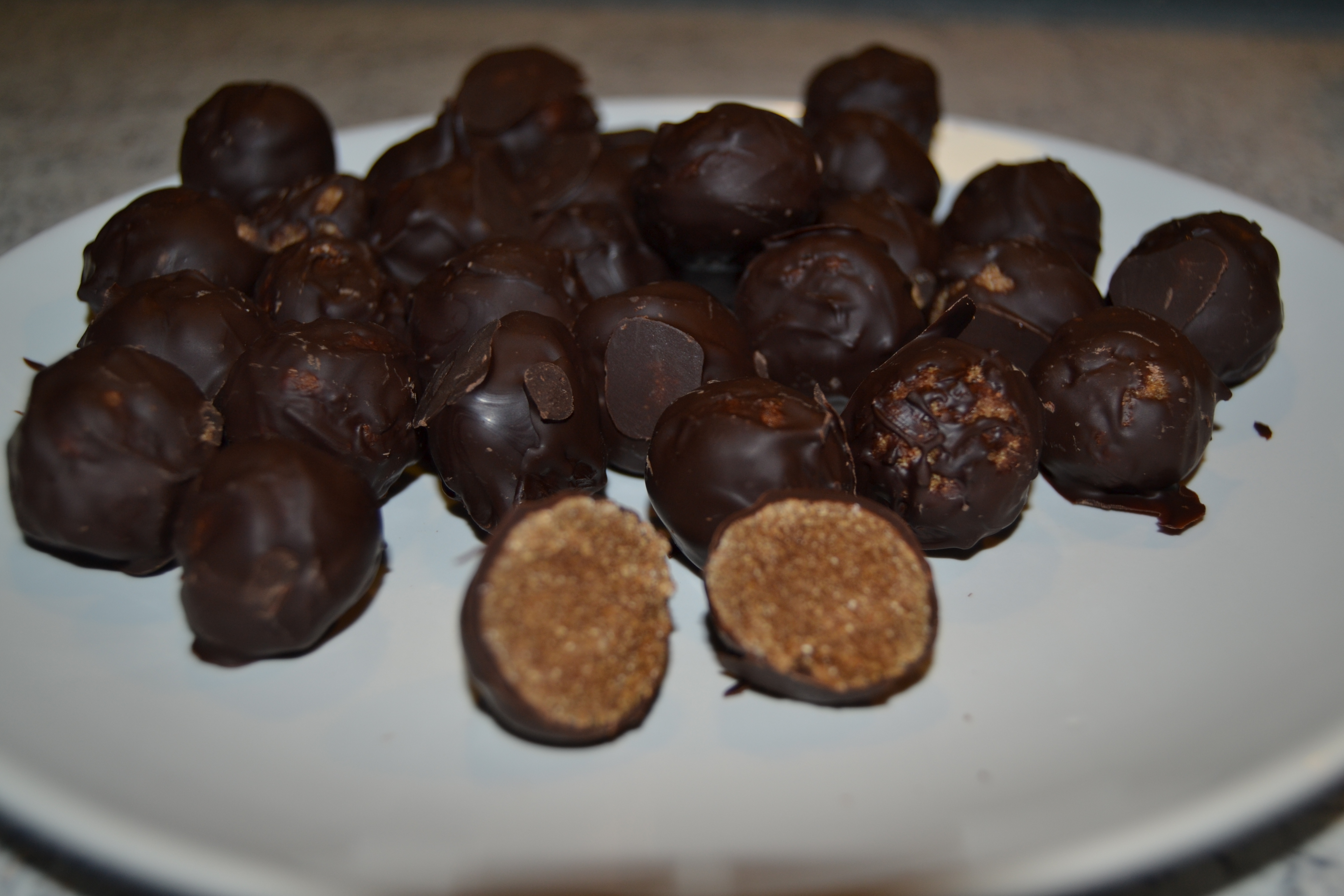 Bland alle ingredienser til en jævn dej og rul til mundrette kugler. Stil på køl mens du laver et vandbad hvori, du kan smelte chokoladen. Dyb herefter alle proteinkuglerne i chokoladen, en efter en og stil køligt igen.