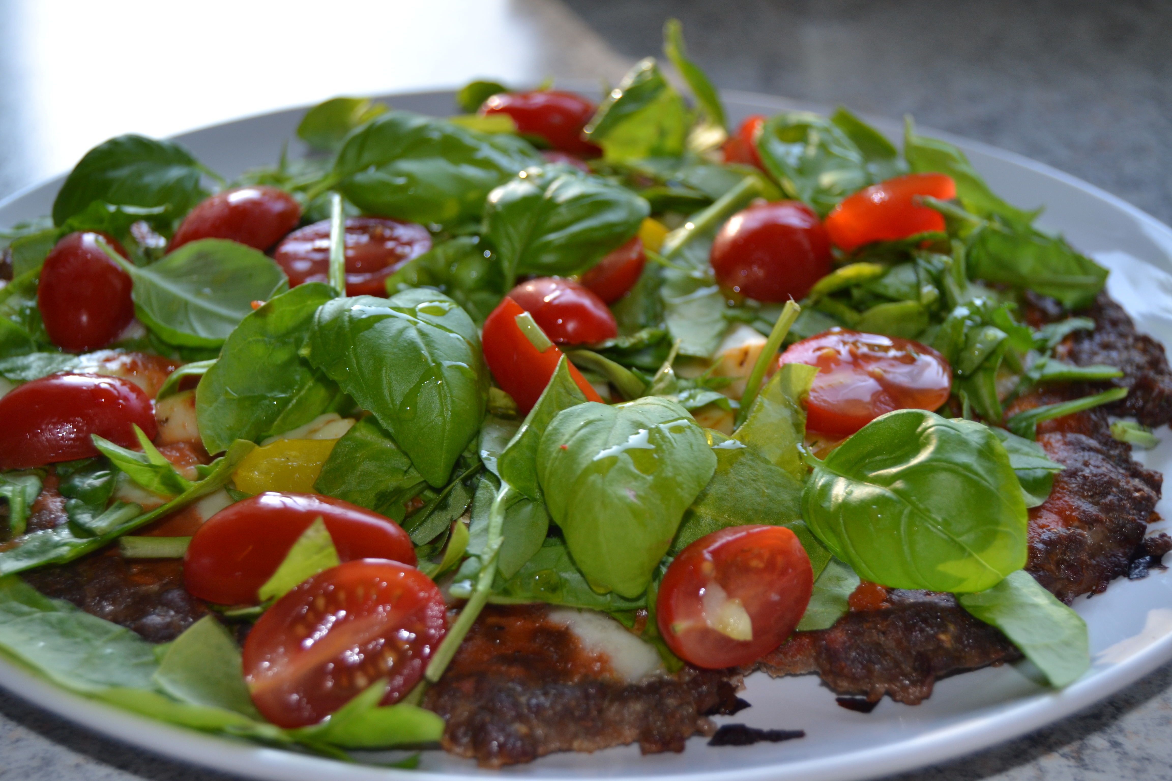Jeg har længe gerne villet prøve at lave en meatza…ja, ikke en pizza, men dens brødløse slægtning som egentligt bare består af en stor flad hakkedreng (meatzaens bund), som er toppet med tomatsauce, ost og lækre grøntsager. Denne kødbombe landede så i min ovn onsdag aften og jeg er FAN. Det er godt nok ikke verdens letteste ret (som den ligger tungt i maven), men den smager super godt og jeg lover at den mætter.