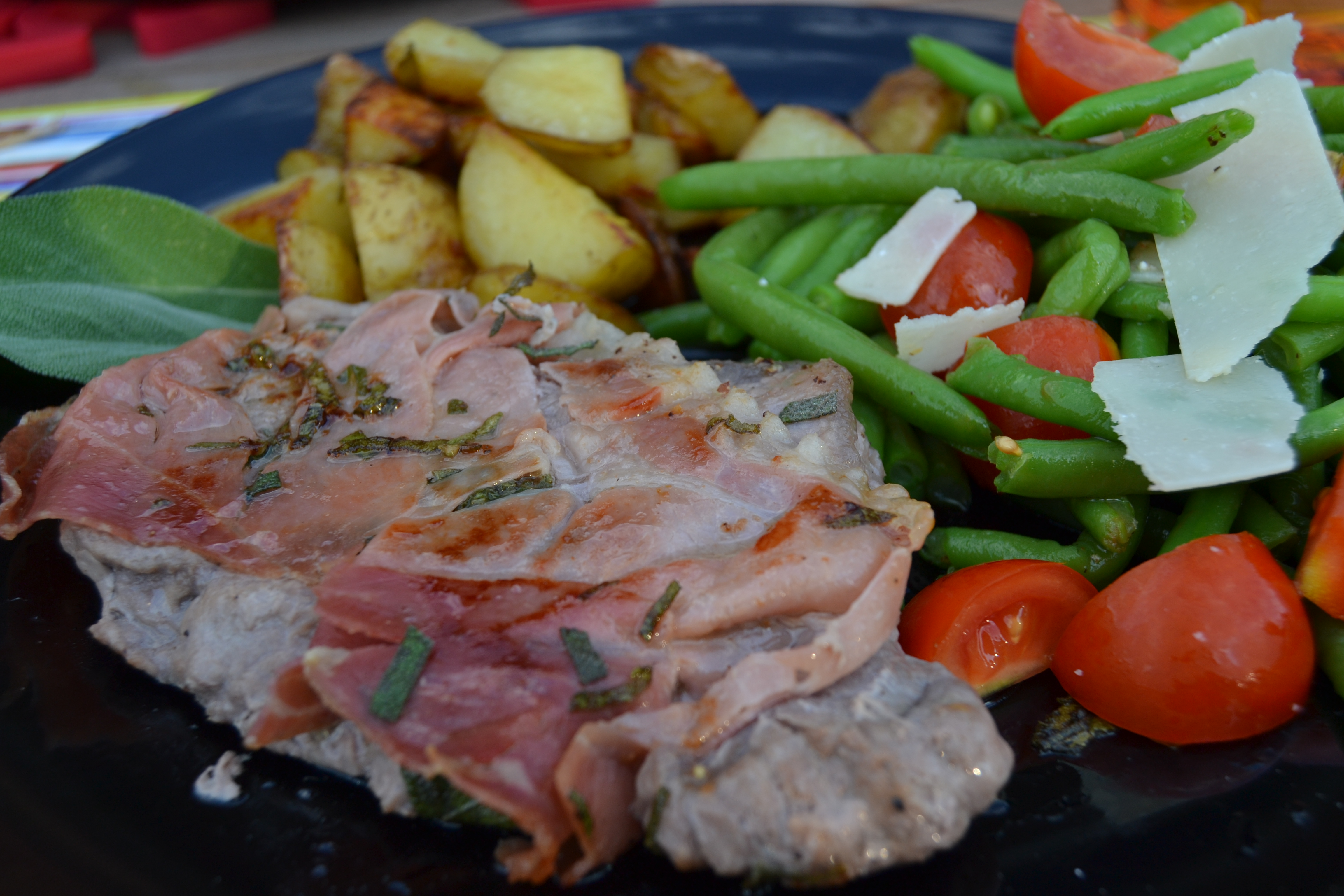 Så har jeg endelig fået sat mig foran computeren efter to skønne ugers ferie i selskab med venner og familie. Det har været super lækkert at have lidt ferie og tid til at lege lidt i køkkenet. Endnu bedre er det, at det vrimler frem med krydderurter, rucola, bær og andre skønne ting i haven. Særligt vores 5 år gamle salvie står super flot i år. I den anledning var det oplagt at kaste sig over den italienske klassiker Saltimbocca, som er en af mine favoritter når det kommer til retter med frisk salvie.