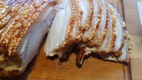 Start med at opvarme ovnen til 250 grader. Rids stegen, hvis den ikke allerede er skåret og krydr let med salt og peber. Placer steget i et ovnfast fad med sværen nedad. Hæld nu bouillon ned i fadet, så sværen lige nøjagtigt er dækket. Placer nederst i ovnen og lad den stege i 20 minutter.